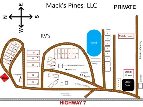 Welcome to Mack's Pines located in the Ozark National Forest. We have a Cozy Café and a convenience